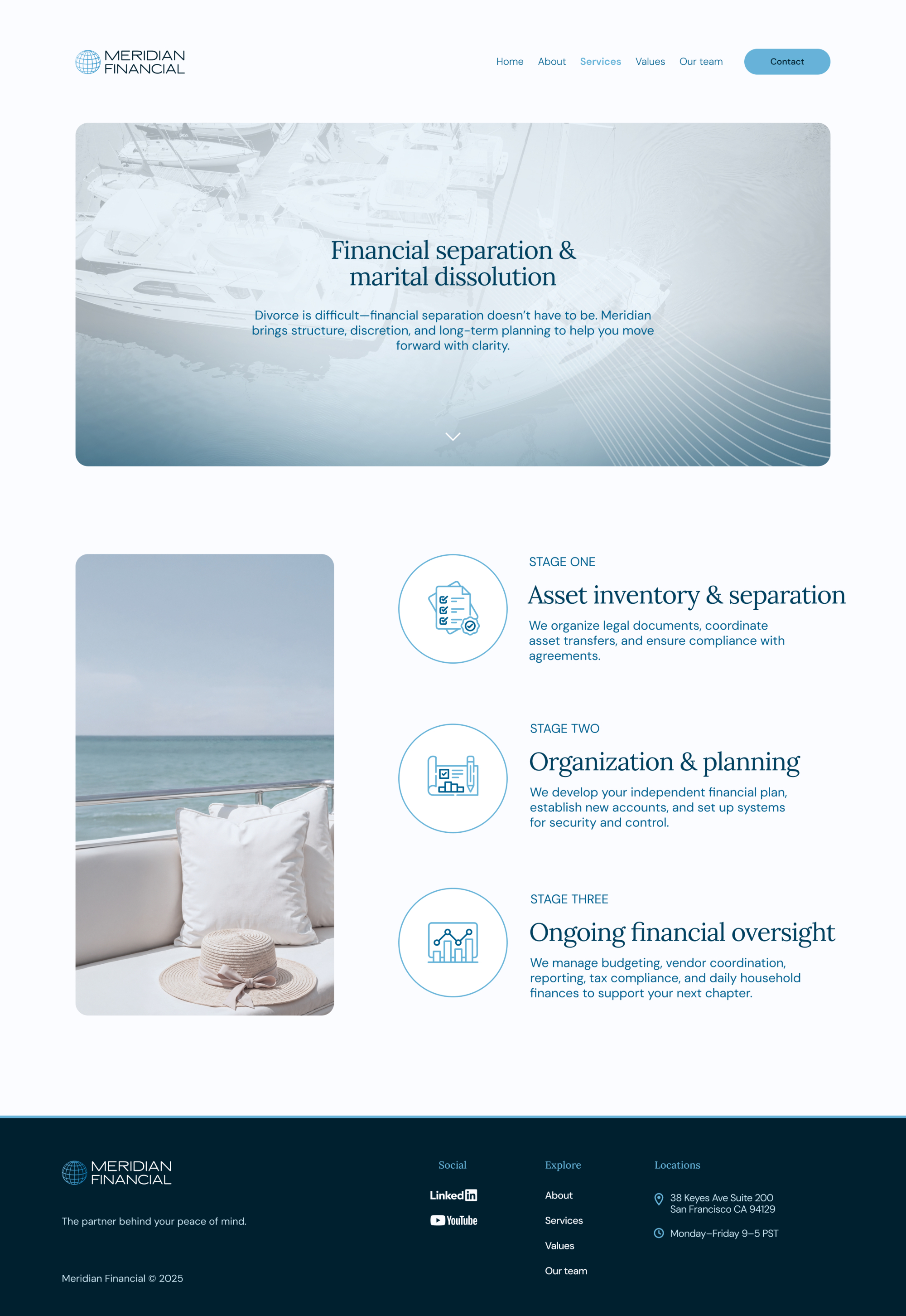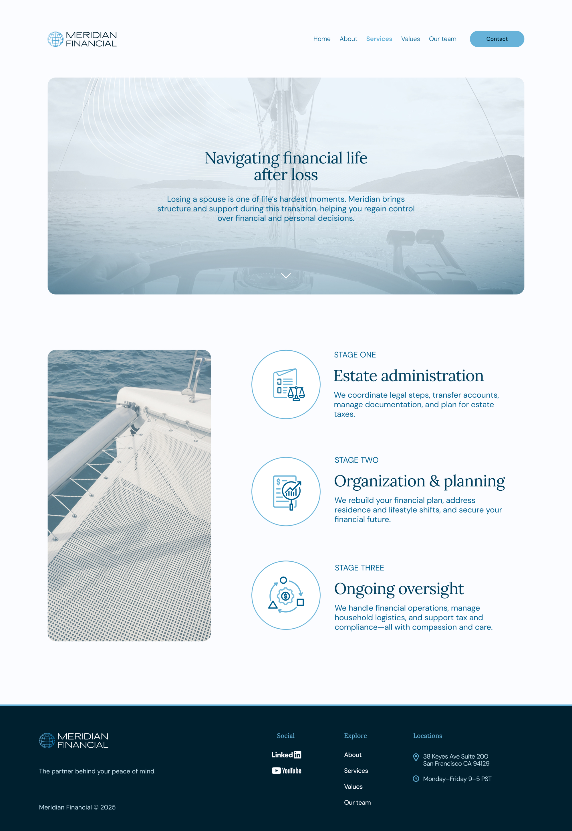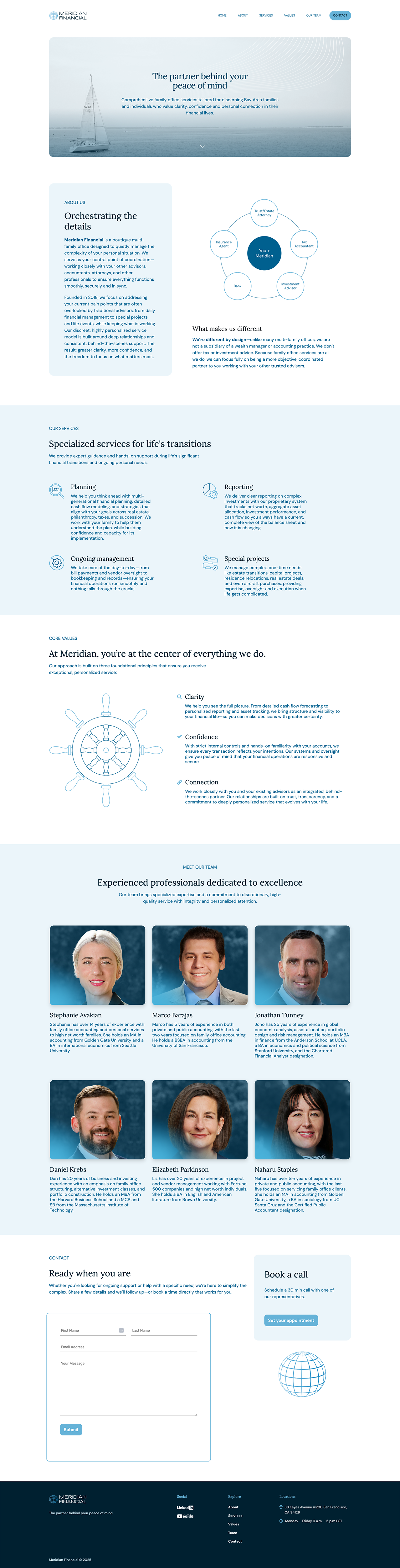 Meridian Financial, a sister company to Atlas Capital Advisors, is a boutique family office serving Bay Area families with highly personalized financial management. Their previous website was dated, confusing, and failed to reflect their discreet, human-centered approach.