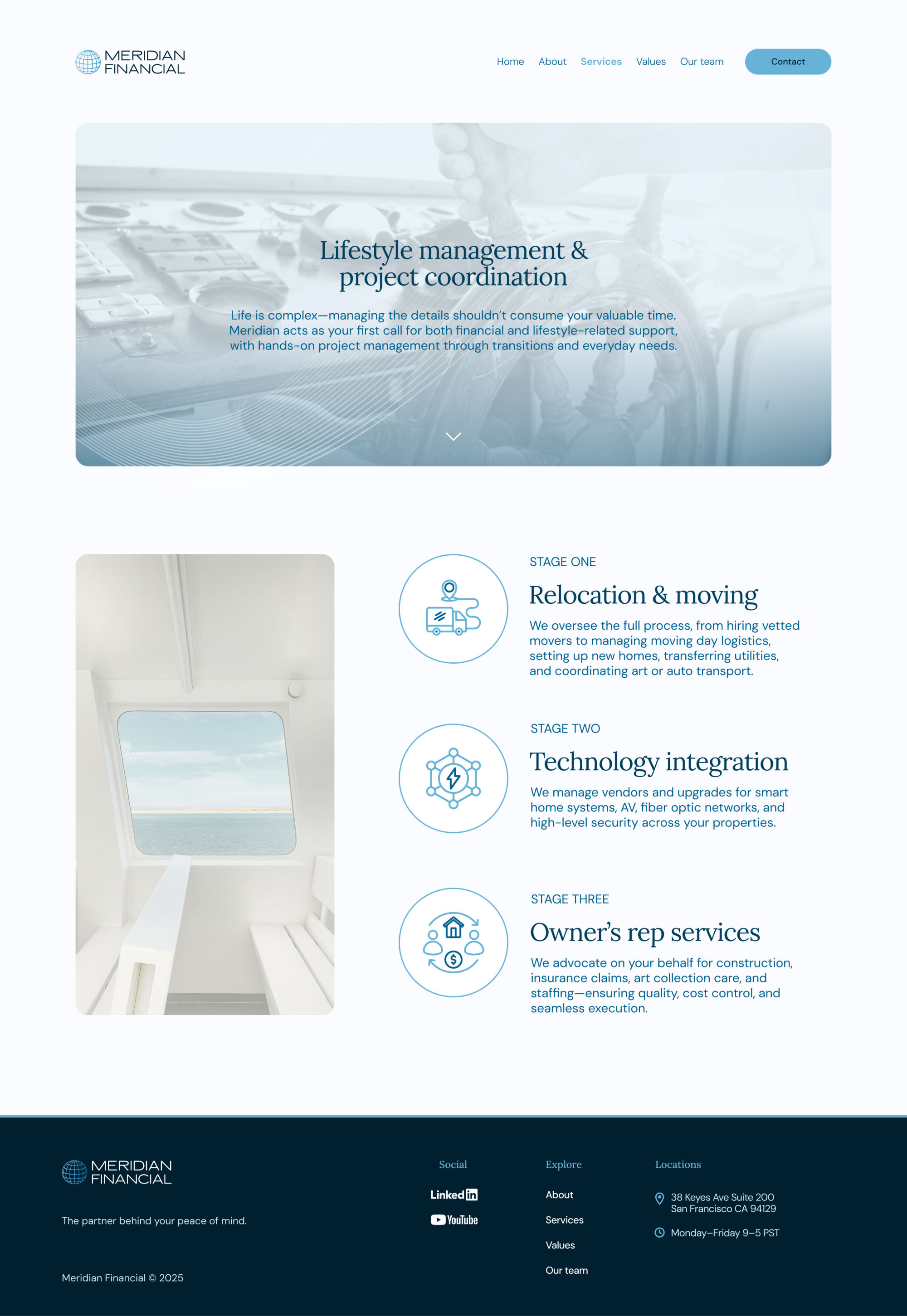 I led the creative direction and wrote all new copy, restructuring the site to clearly communicate Meridian’s mission, services, and values. To complement Atlas Capital while establishing a unique identity, I developed the theme of refined maritime minimalism—a calm, navigational design language inspired by the Bay Area’s coastal setting.
